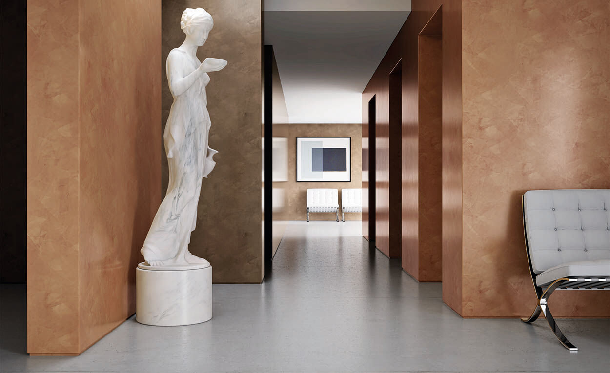 San Marco Grassello di Calce (Грасселло ди Кальче) – это натуральное минеральное декоративное покрытие с декоративным эффектом камня мрамора. Материал наносится металлической кельмой в два-три слоя, хорошо полируется до гладкой глянцевой поверхности. Grassello di Calce — венецианская штукатурка, которая часто используется в классических интерьерах. Именно венецианская штукатурка является родоначальницей всех декоративных покрытий.