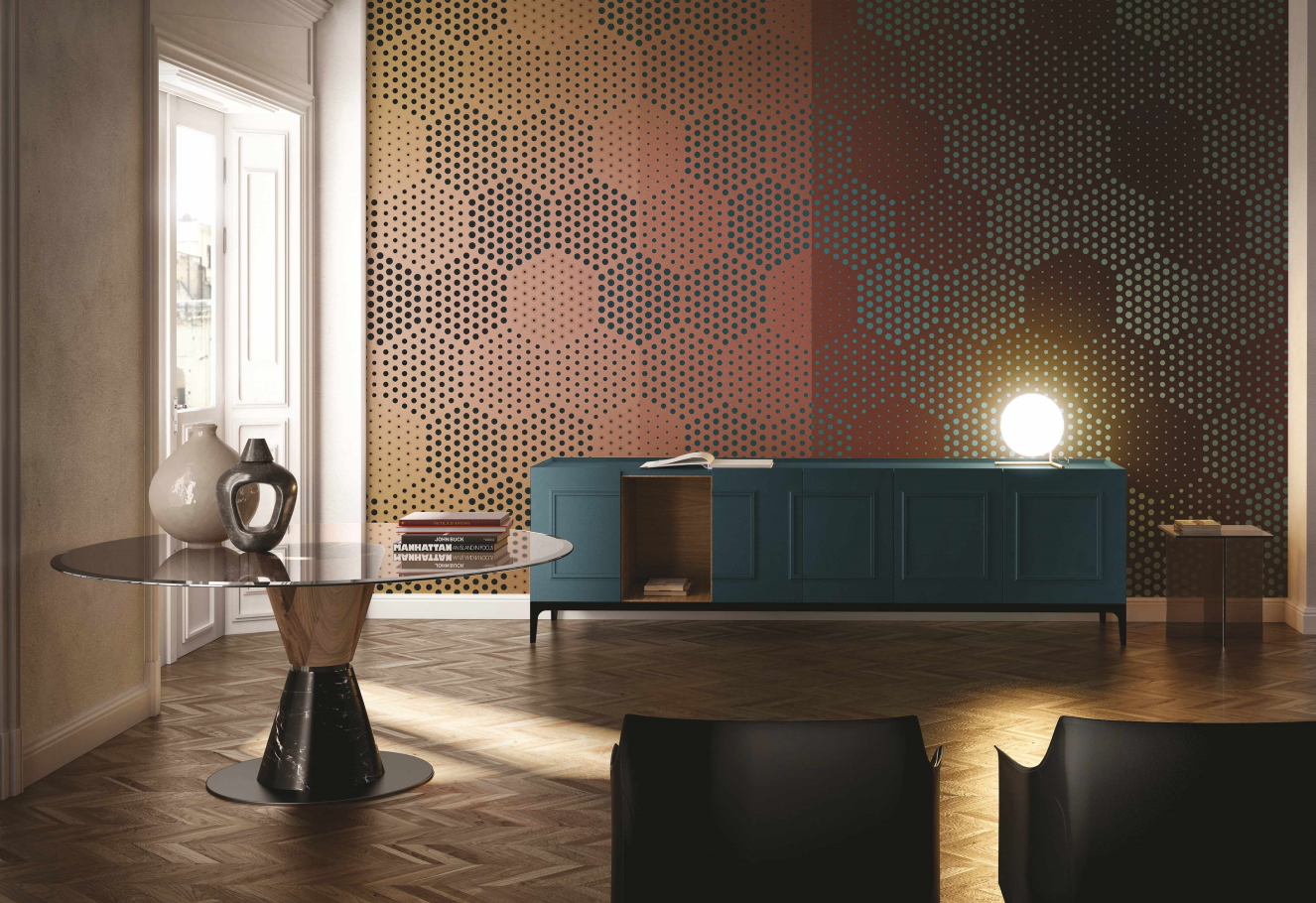 Цветовая гамма и орнамент обоев Inkiostro Bianco подчеркнут роскошность и стилистику интерьера.