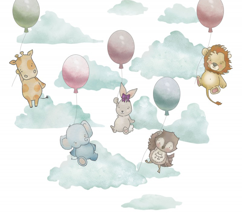 Kids от Ortograf (33308) – универсальны и на 100% соответствуют, если вы ищете обои следующих тематик: воздушные шары, детские, животные, заяц, лев, небо, облака, слоны, совы.