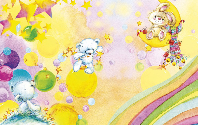Kids от Ortograf (5699) – универсальны и на 100% соответствуют, если вы ищете обои следующих тематик: детские, заяц, звезды, медведь, многоцветные.