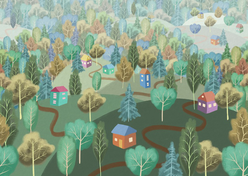 Kids от Ortograf (8329) – универсальны и на 100% соответствуют, если вы ищете обои следующих тематик: деревья, детские, здания, лес.