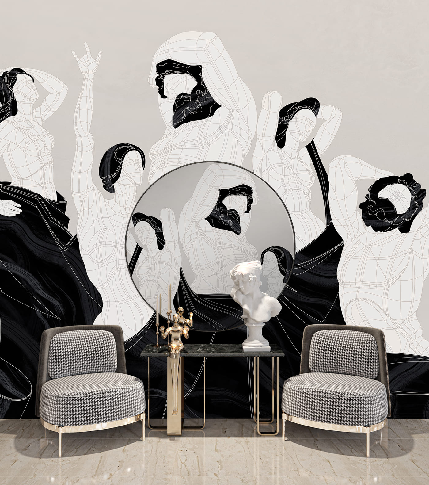 Цветовая гамма и орнамент обоев PatternRoll подчеркнут роскошность и стилистику интерьера.