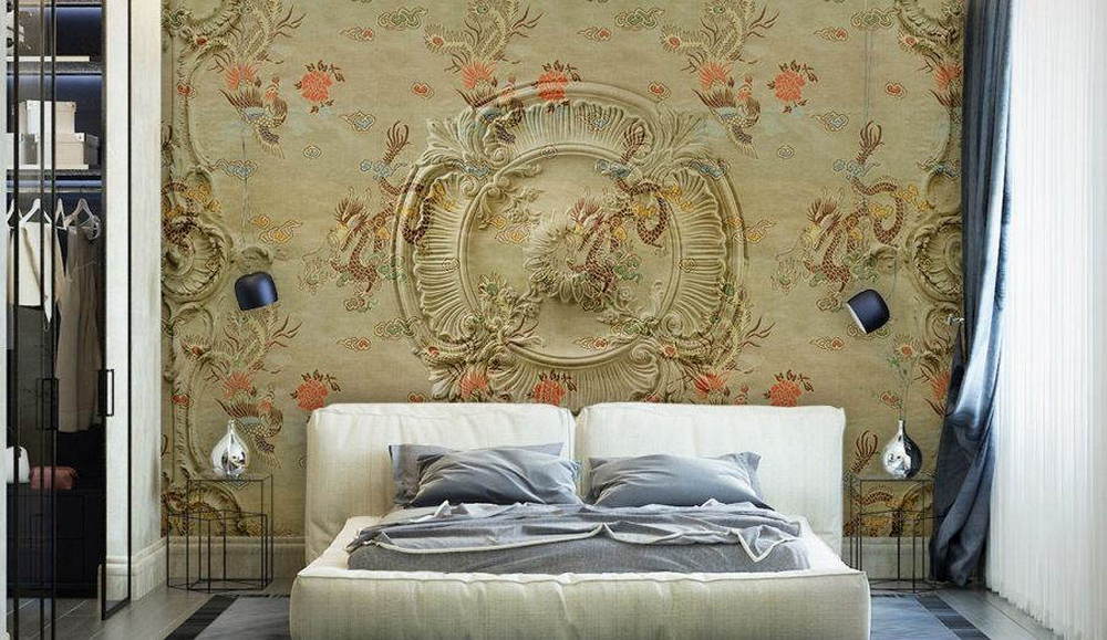 Chinoiserie будет выглядеть безупречно гладко, словно являясь частью поверхности стены.