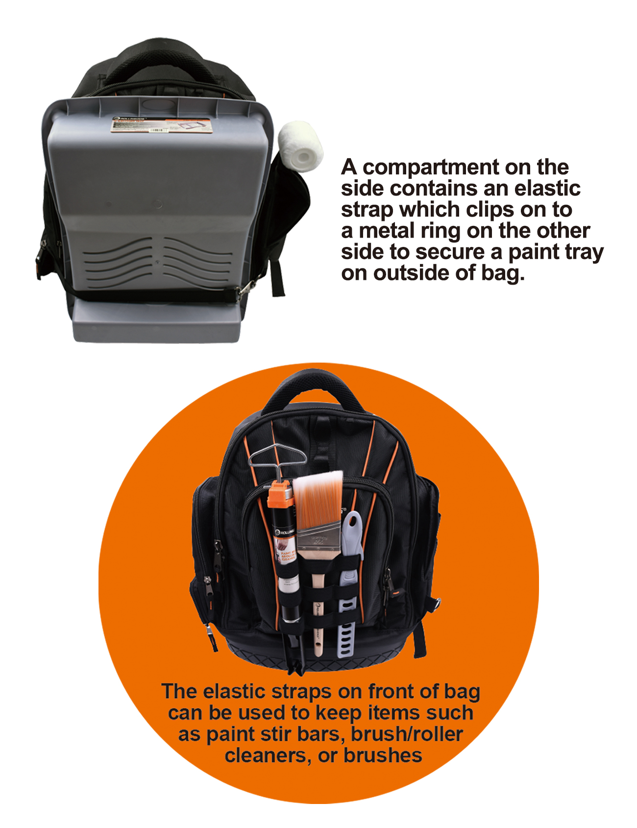 Рюкзак разработан специально для оптимального размещения малярного инструмента. Рюкзак имеет прочную пластиковую основу, эргономичные подкладки для спины и плеч для удобства ношения.