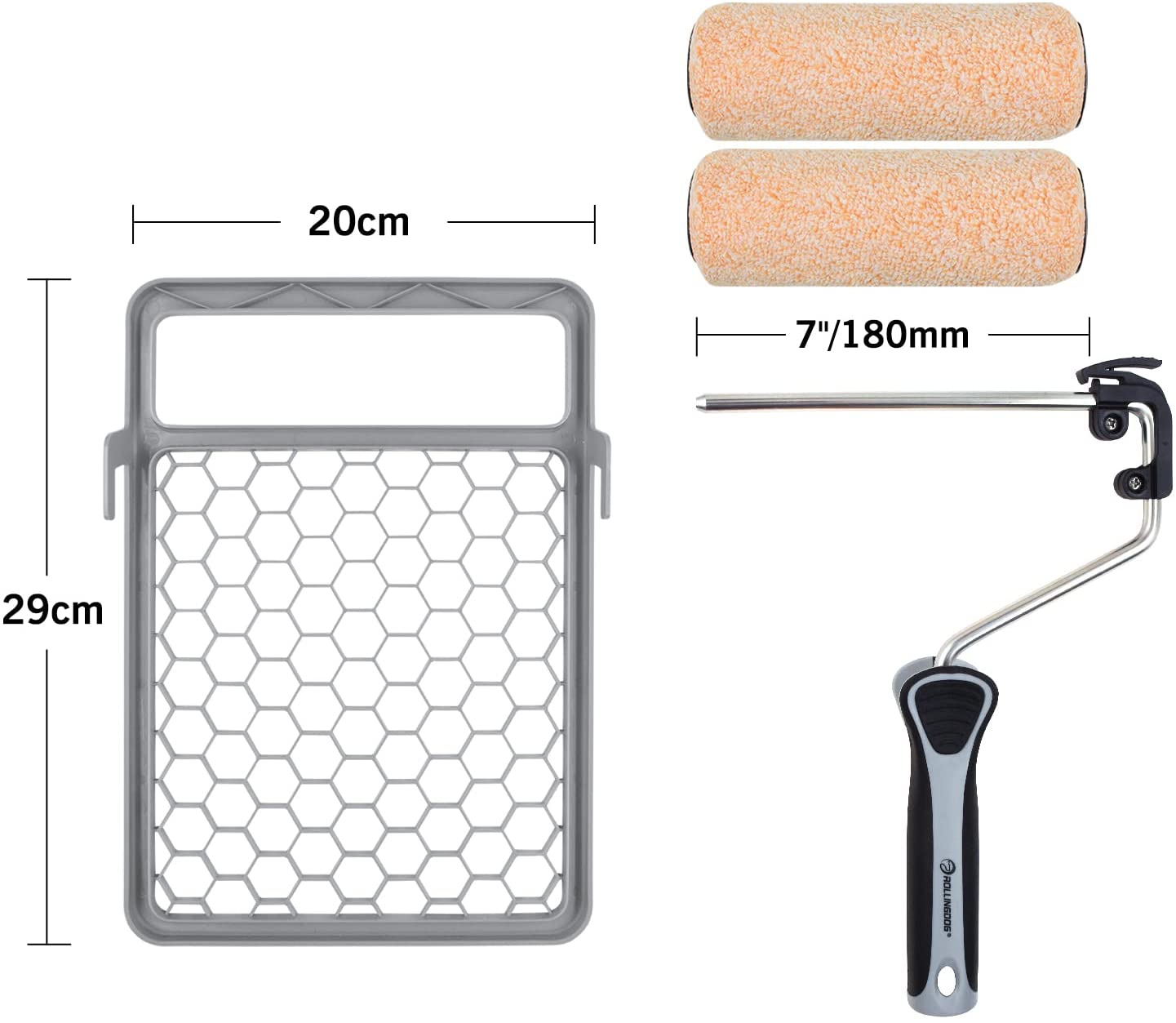 QUICKFIRE!™ Набор малярный 4 предмета- 2 валика Super-Micro™ 7» (180 мм), ворс 9,5 мм.- бюгель, диаметр стали 8 мм.- малярная решетка, пластик