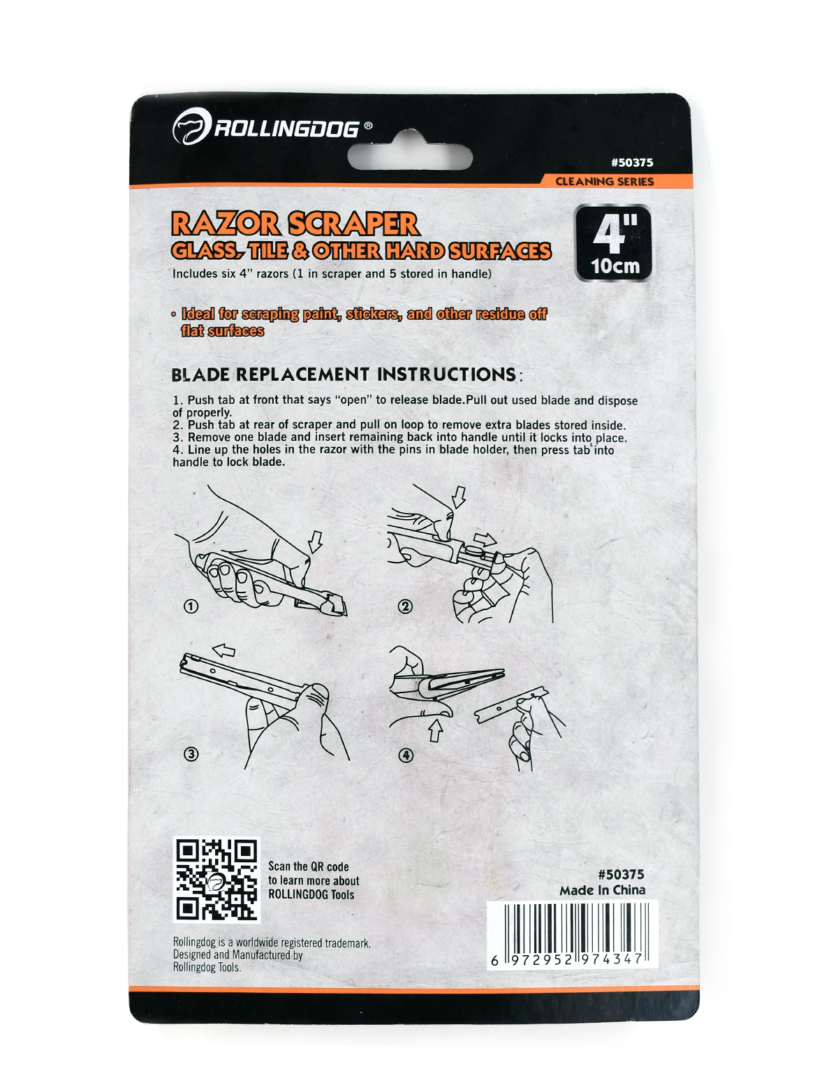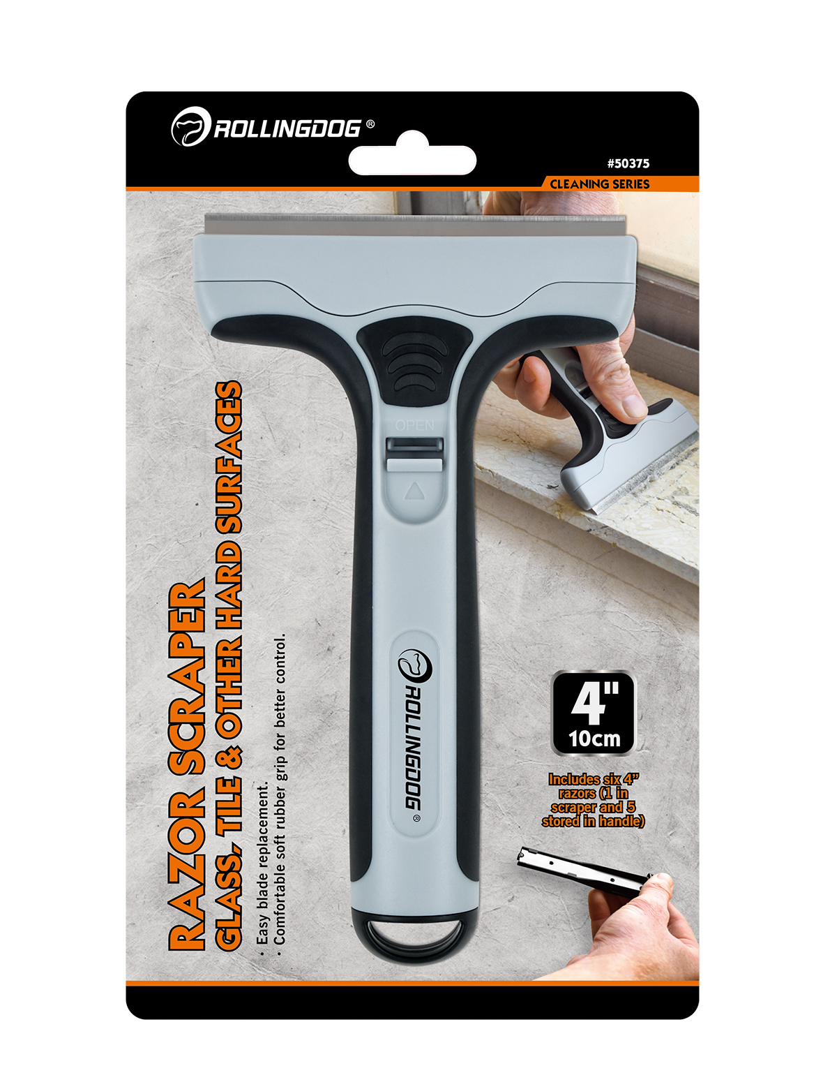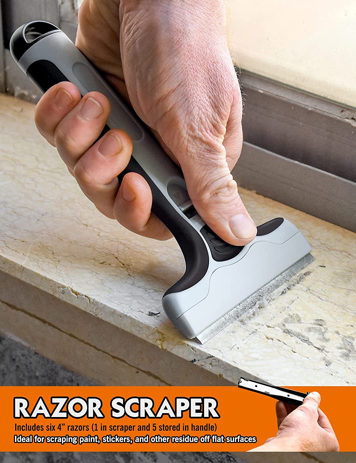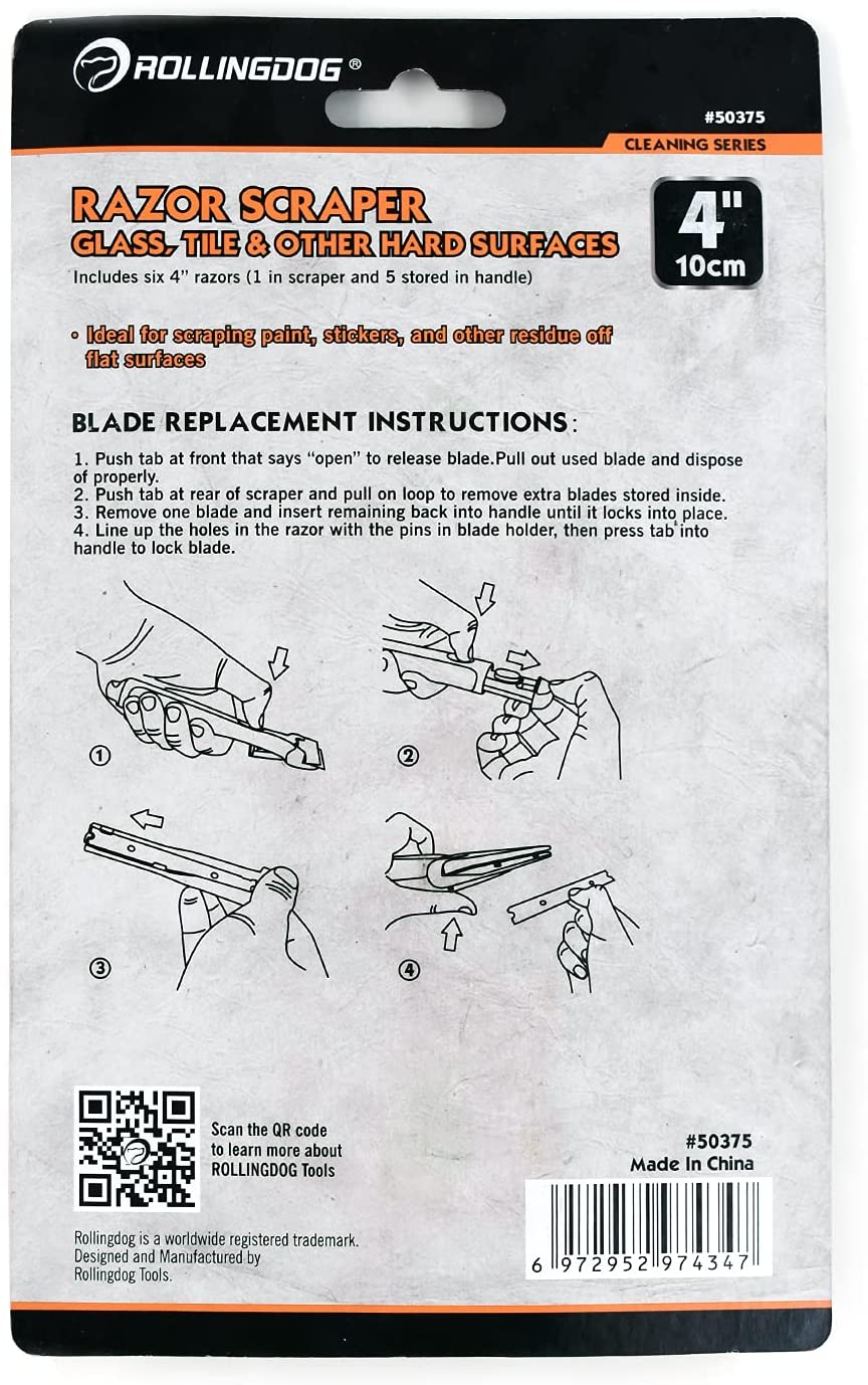 Универсальный скребок с удобной прорезиненной ручкой и надежной, простой в использовании системой блокировки лезвия. Скребок включает в себя 5 дополнительных лезвий, хранящихся внутри ручки. Идеально подходит для соскабливания краски, наклеек и других остатков с твердых гладких поверхностей, таких как окна, стекла и плитка.
