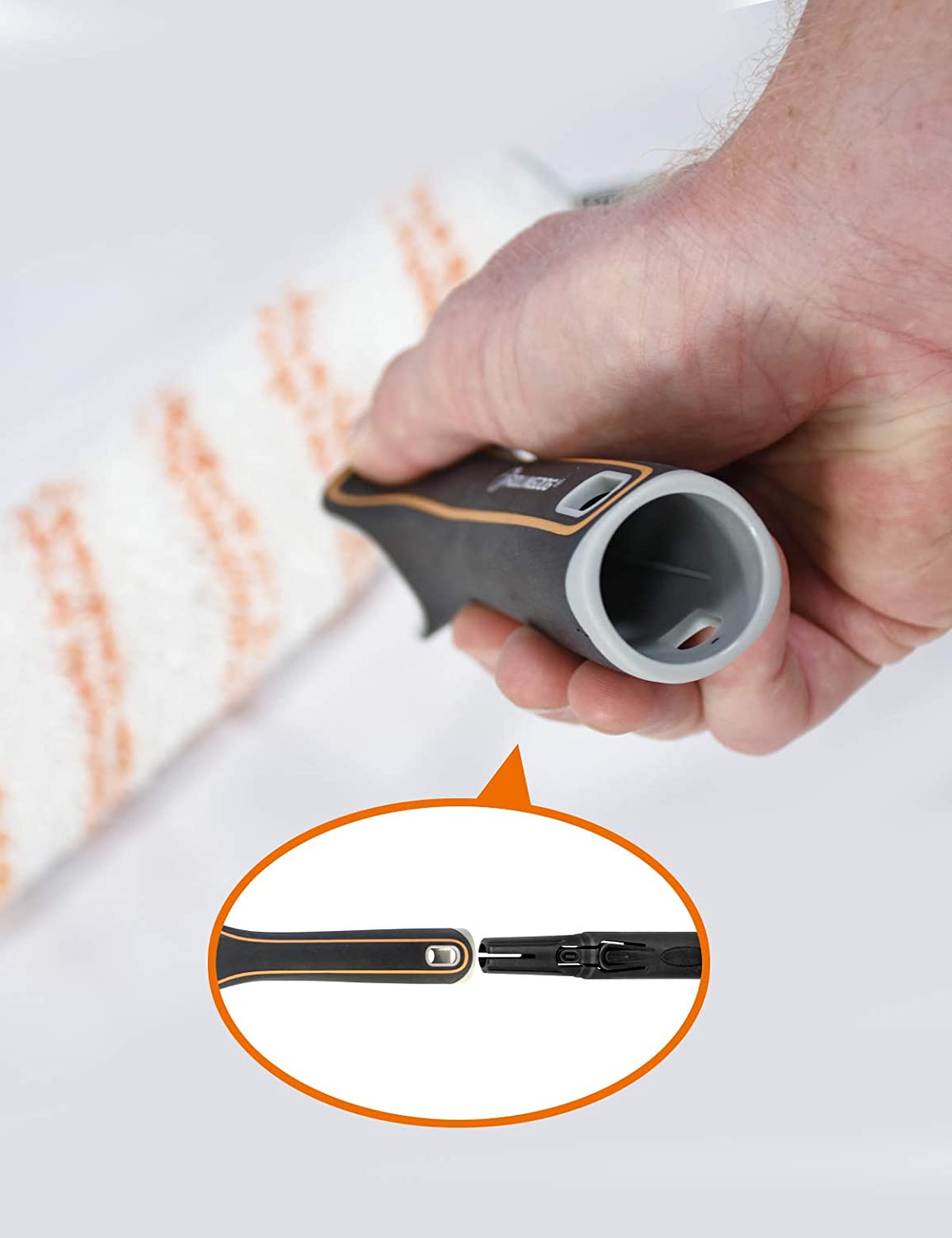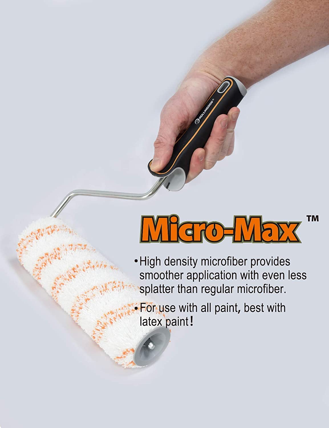 Микрофибра высокой плотности обеспечивает более гладкое нанесение с еще меньшим количеством брызг, чем обычная микрофибра. Ворс 12,7 мм. позволяет использовать его на поверхностях от полугладких до полугрубых. Эргономичная ручка делает работу максимально комфортной, снимает нагрузку на суставы рук. Бюгель выполнен из высококачественной стали с коррозионностойким хромированным покрытием.