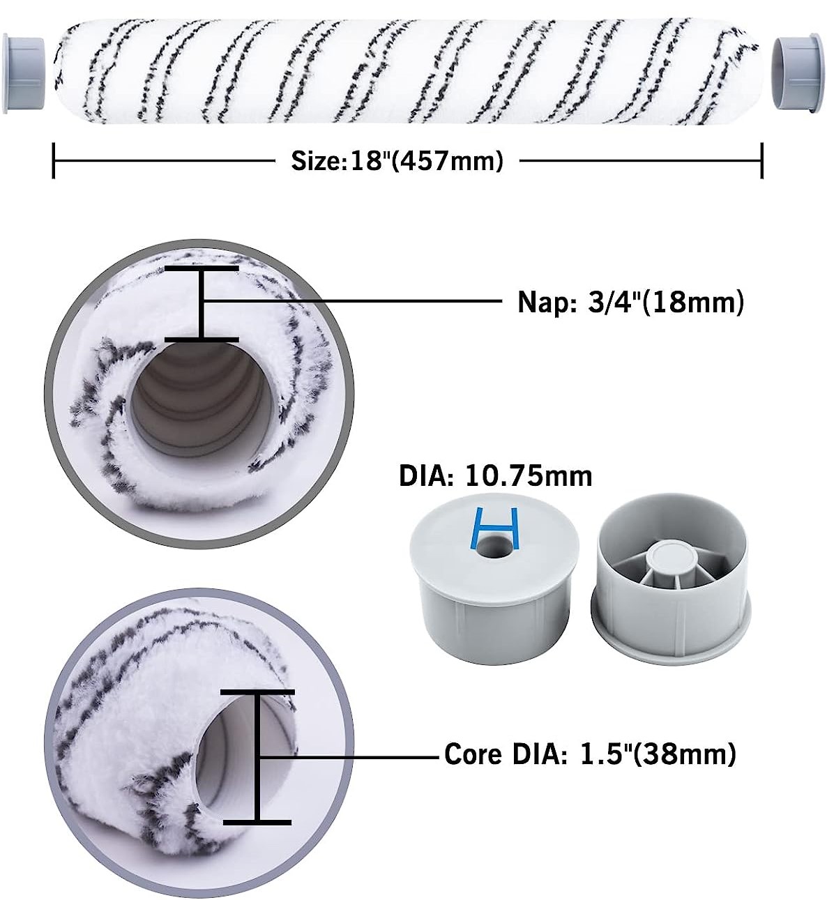 Валик большой Exterion™ с пластиковыми заглушками 2 шт. в комплектеМатериал: премиум полиамидТип: ТканыйРазмер: 18″ (450 мм)Шубка 3/4″ (18 мм)Диаметр крепления: Ø38мм