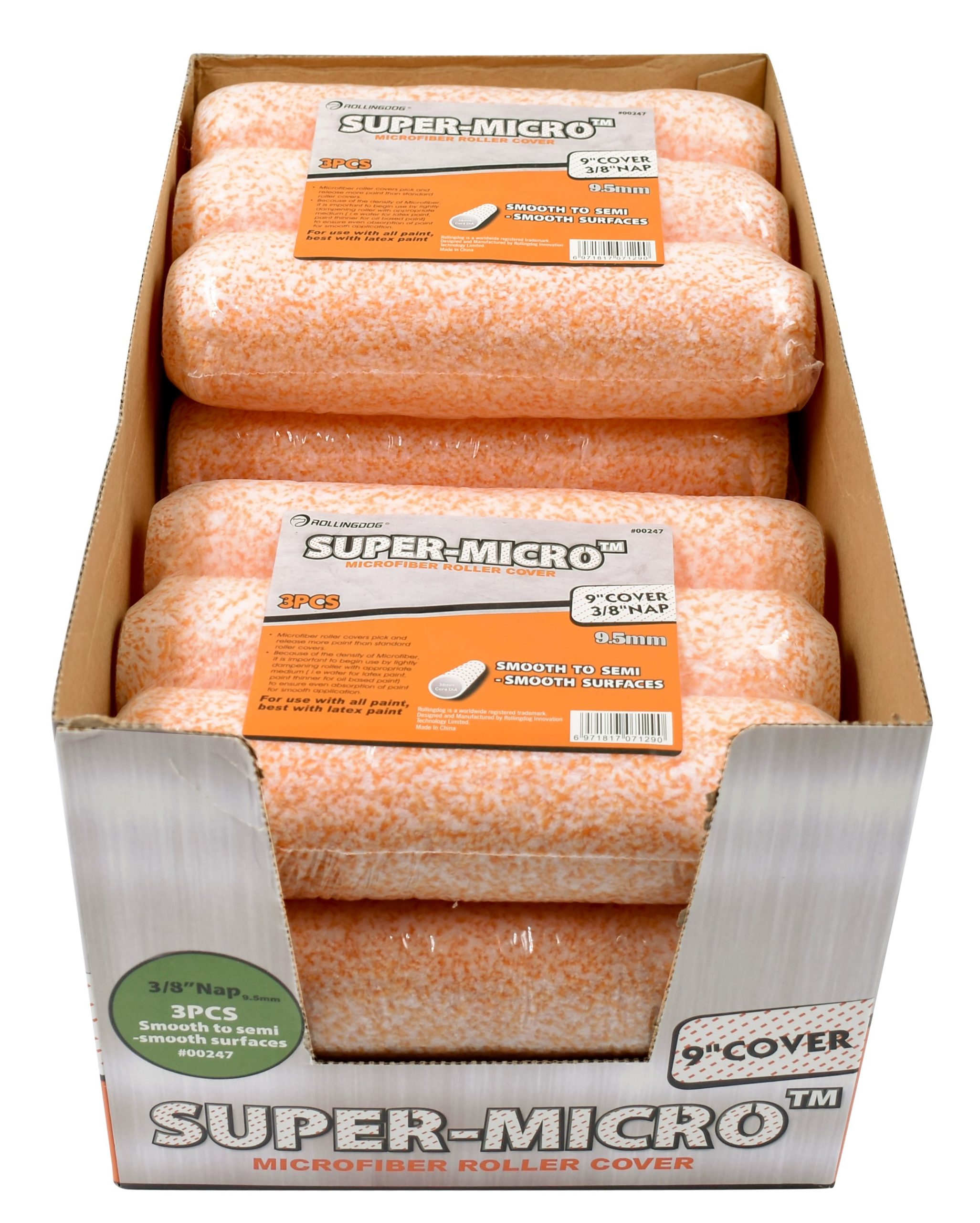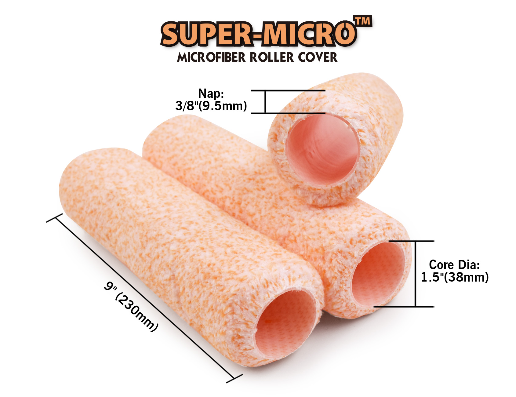 Валик Super-Micro™, набор 3 шт.Материал: МикрофибраРазмер: 9″ (230мм)Шубка 3/8″ (9,5мм)Диаметр крепления: Ø38мм