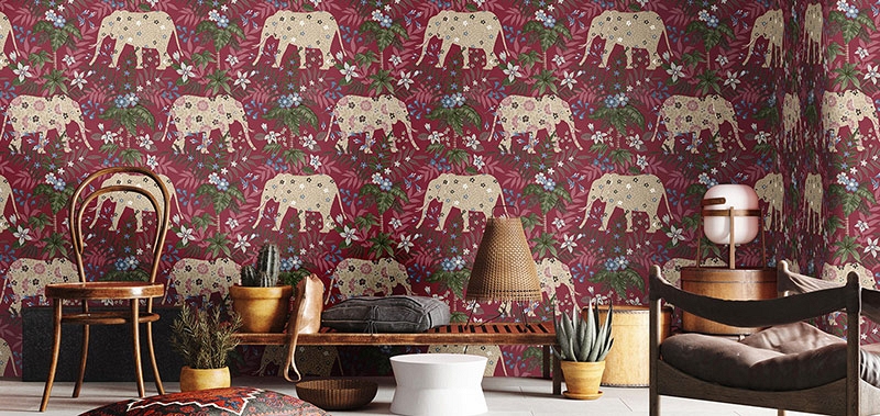 Sansibar от Architector (KT18548 – универсальны и на 100% соответствуют, если вы ищете обои следующих тематик: листья, мелкие цветы, пальма, слоны, цветы.