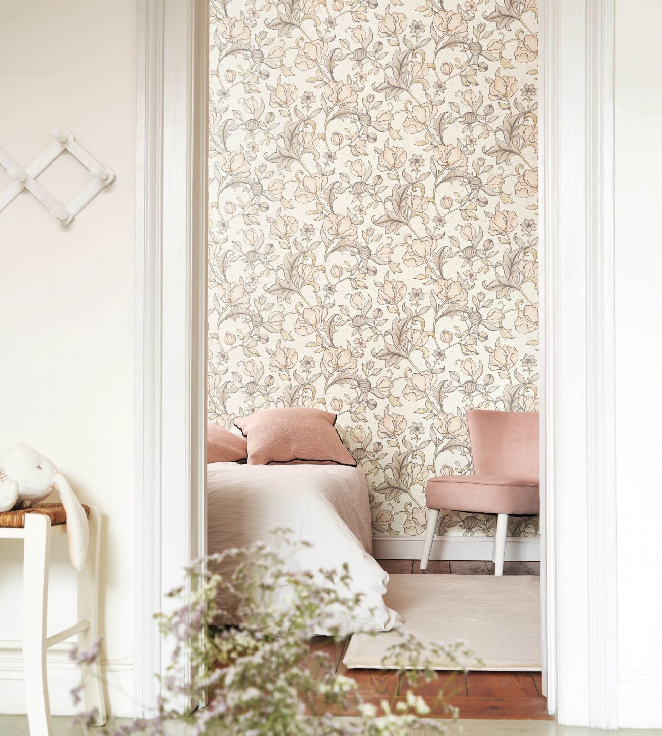 Цветовая гамма и орнамент обоев Casadeco подчеркнут роскошность и стилистику интерьера.