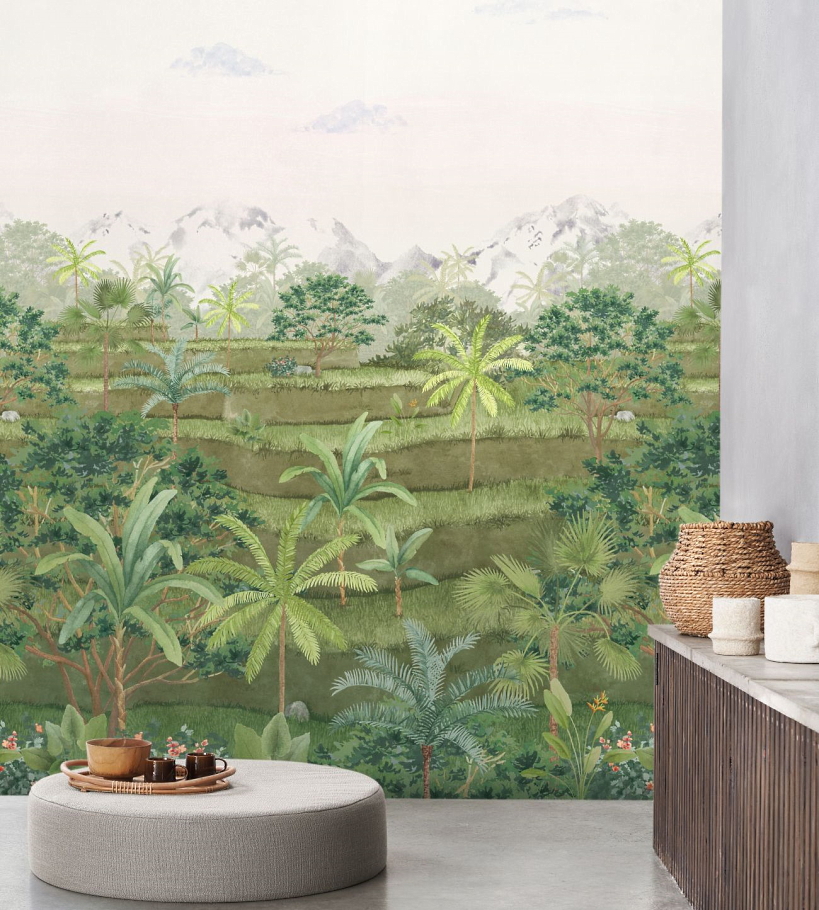 Bali придадут помещению особого шика, наполнят атмосферу комфортом и гармонией, а если вы ищете обои по таким тематикам, как: акварель, горы, деревья, пальма, пейзажи, растения, тропики, то BALI88207203 —