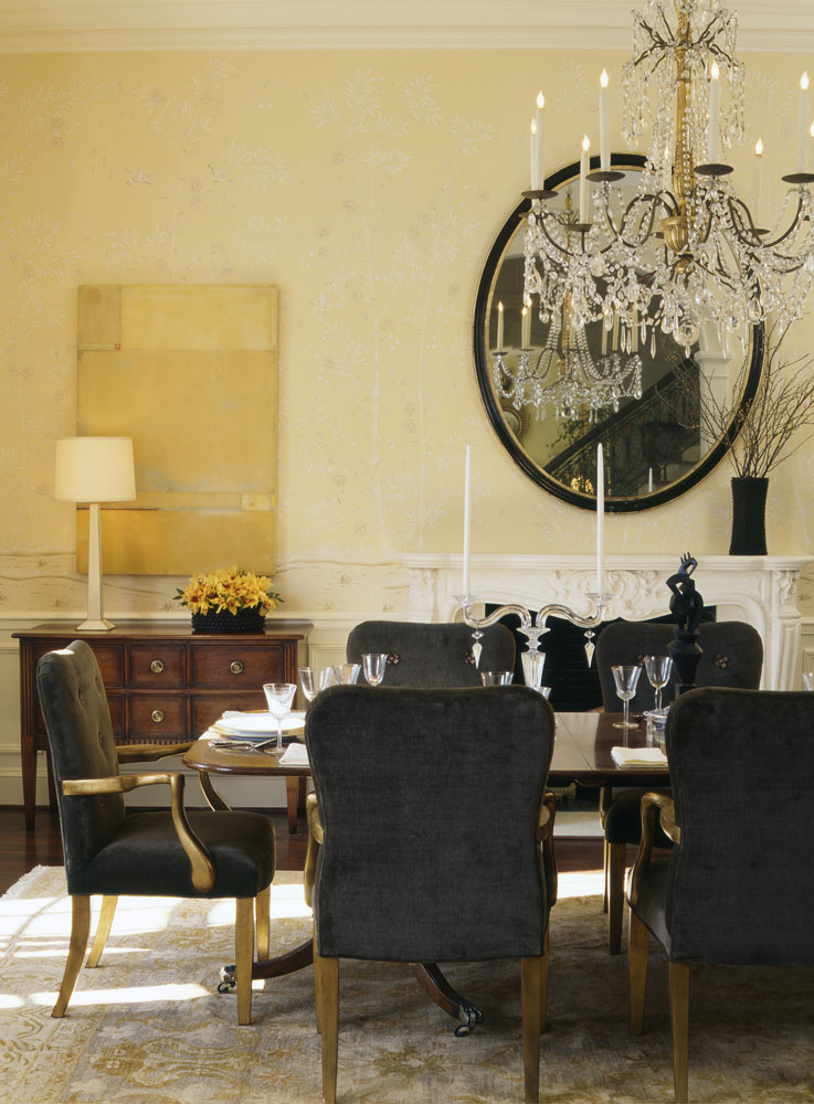 Цветовая гамма и орнамент обоев De Gournay подчеркнут роскошность и стилистику интерьера.