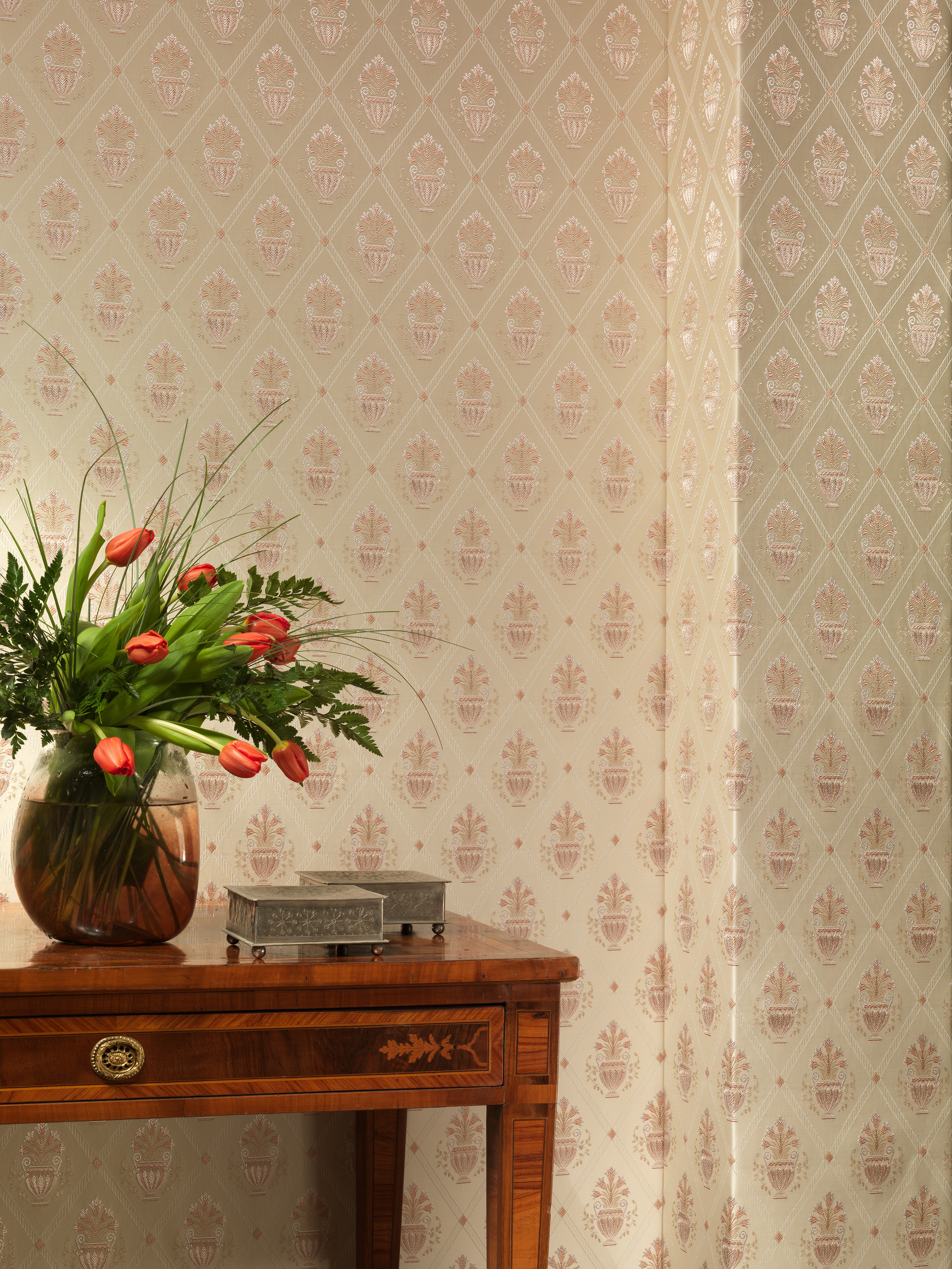 Цветовая гамма и орнамент обоев Epoca подчеркнут роскошность и стилистику интерьера.