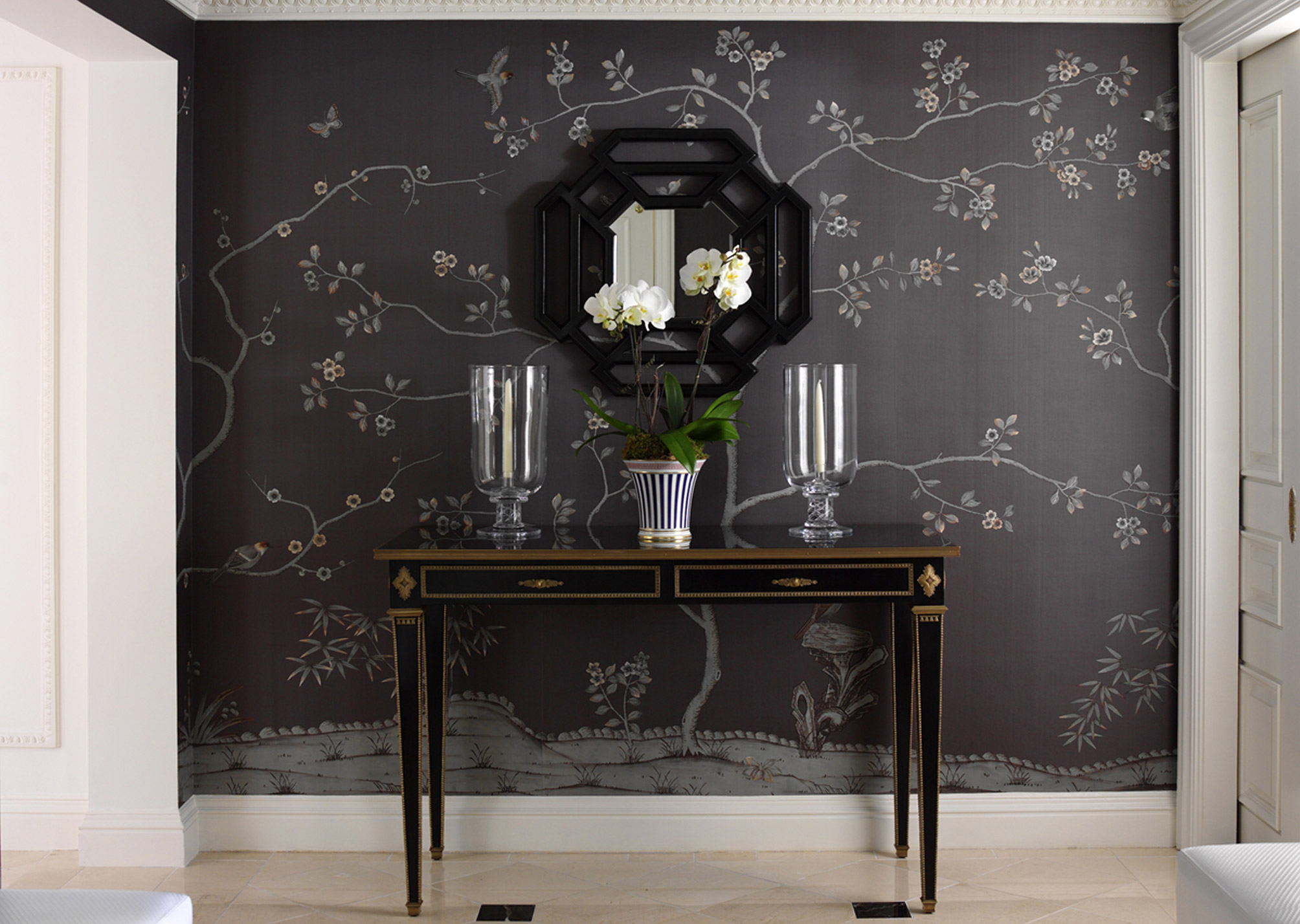 Chinoiserie будет выглядеть безупречно гладко, словно являясь частью поверхности стены.