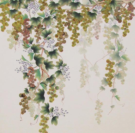 Asia от Misha (Grapes/White) – универсальны и на 100% соответствуют, если вы ищете обои следующих тематик: ветки и побеги, листья, панно, ягоды.
