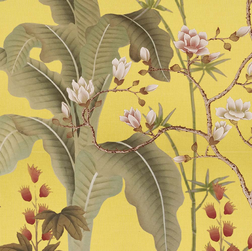 China Classic от Misha (Esperanto/Yellow Earth) – универсальны и на 100% соответствуют, если вы ищете обои следующих тематик: бабочки, ветки и побеги, крупные листья, листья, панно, цветы.