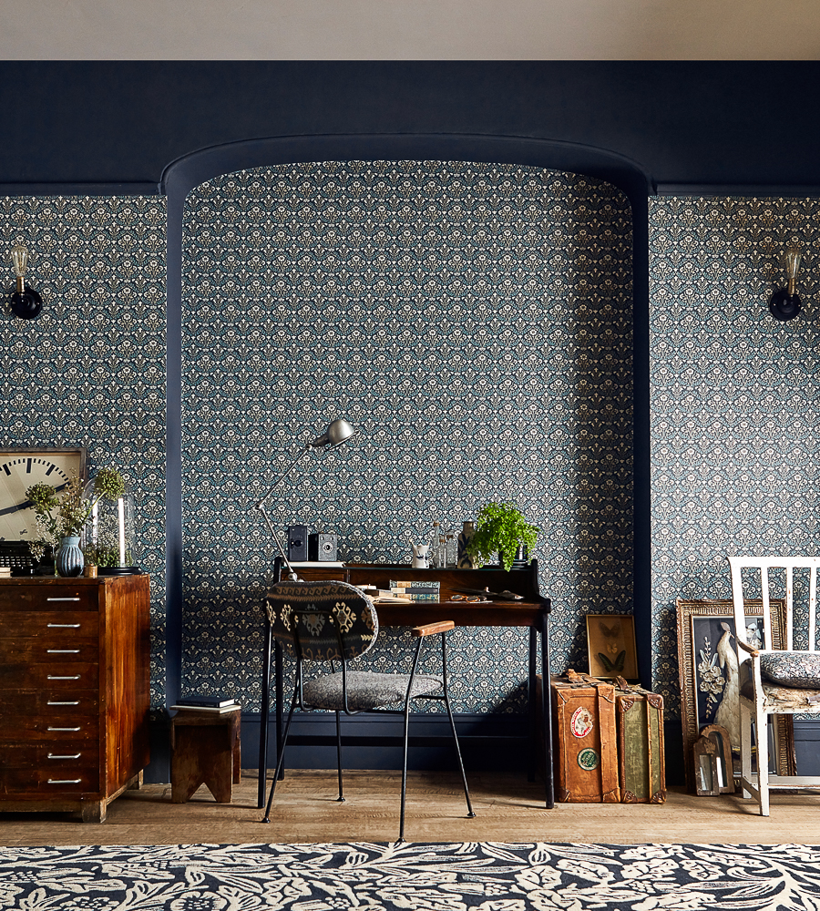 Цветовая гамма и орнамент обоев Morris & Co подчеркнут роскошность и стилистику интерьера.
