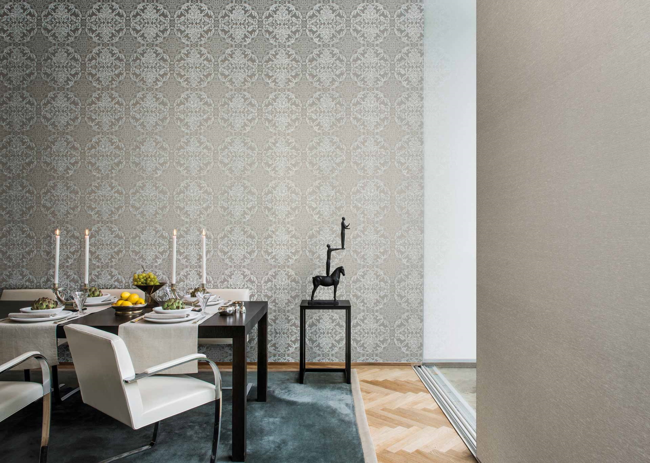 Цветовая гамма и орнамент обоев Omexco подчеркнут роскошность и стилистику интерьера.