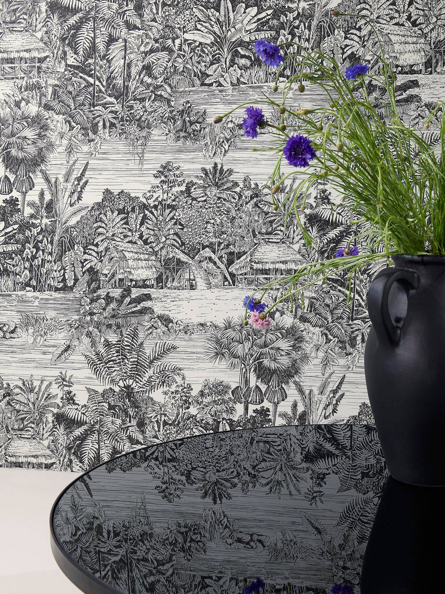 Les Dessins 6 от Pierre Frey (FP959002) – универсальны и на 100% соответствуют, если вы ищете обои следующих тематик: азия, африканский стиль, пальма, пейзажи, тропики, черно-белые, этнический.