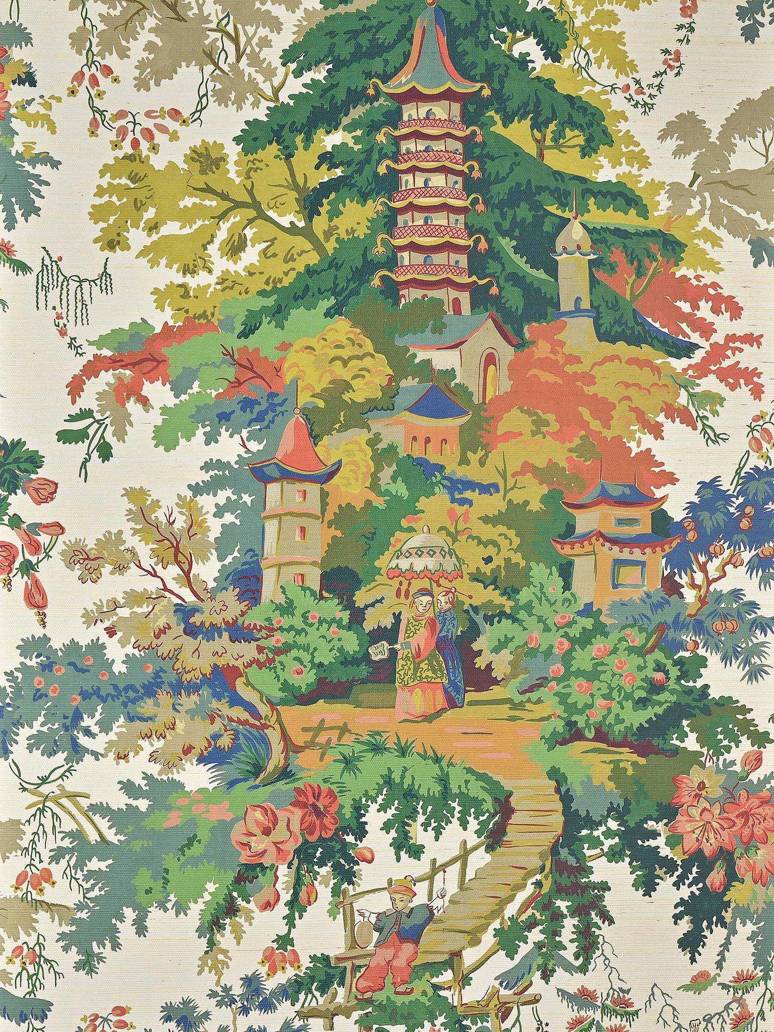 Les Dessins 6 от Pierre Frey (FP965001) – универсальны и на 100% соответствуют, если вы ищете обои следующих тематик: азия, восток, деревья, люди, многоцветные, пагода, цветы.
