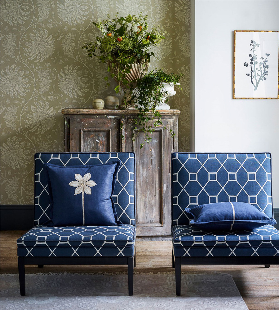 Цветовая гамма и орнамент обоев Sanderson подчеркнут роскошность и стилистику интерьера.