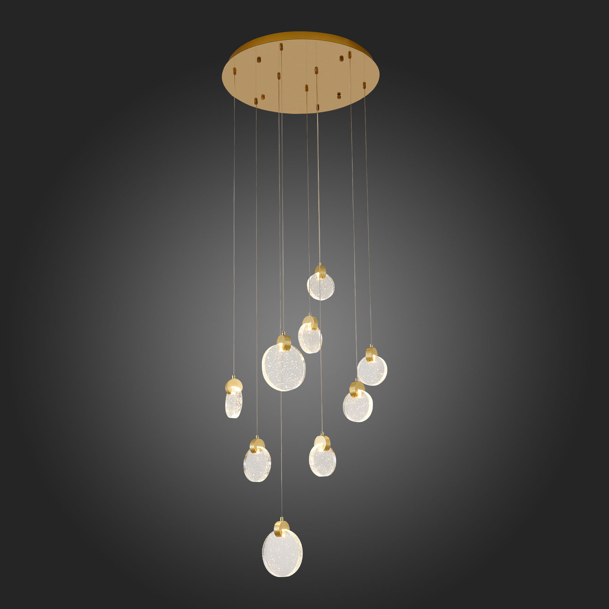 SL6104.203.09 Светильник подвесной ST-Luce Золотистый/Прозрачный,С пузырьками воздуха LED 9*3W 3000K Montecelio